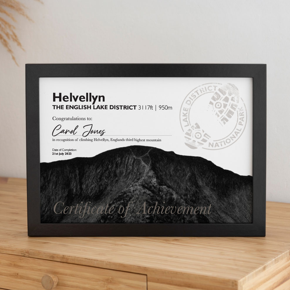 Helvellyn is more than just a mountain — it’s an experience, a challenge, and for many, a defining achievement. This certificate is a proud and lasting reminder that you made it to the top.